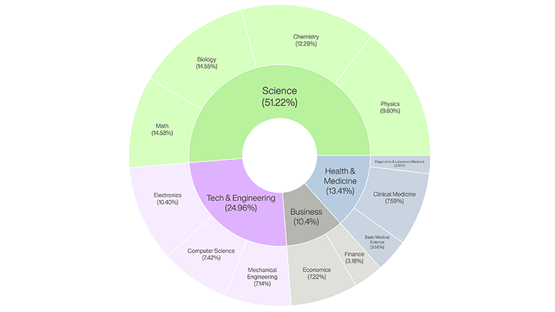 - Tech and engineering: Electronics, computer science, mechanical engineering.