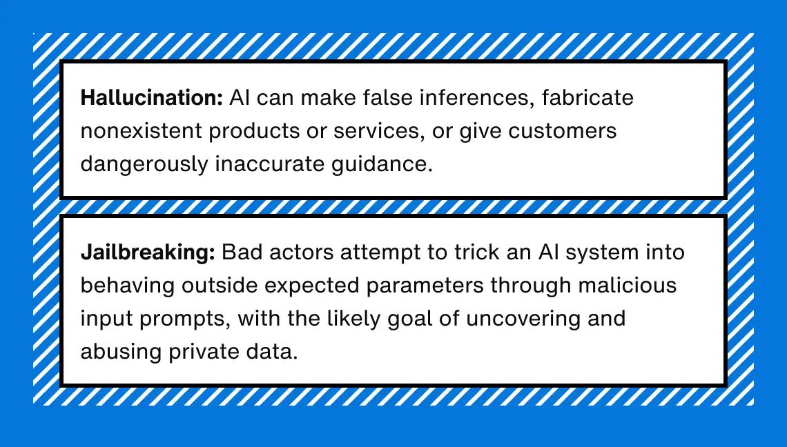On the other hand, deploying open-ended conversational AI in banking poses serious challenges. Financial institutions deal with sensitive customer data and face complex compliance requirements from regulatory bodies like the SEC and FINRA. In general, two primary risks emerge when integrating sophisticated conversational AI assistants: Hallucination and Jailbreaking.