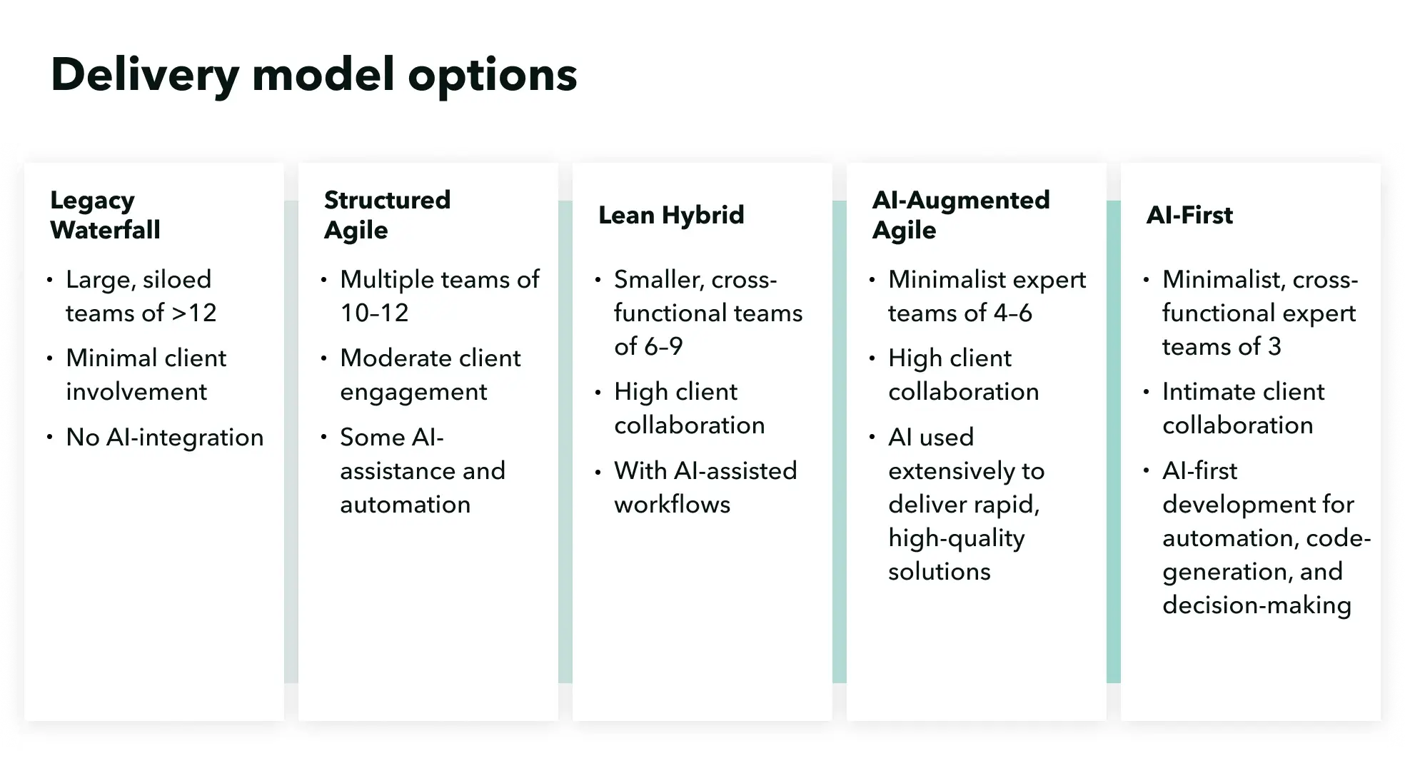 Alex: Clients who want to get updates very often as we're making software every day, who want to push their business, push their industry … those are the folks who really benefit from working with AI-First teams. If you’re the type of organization that needs longer review cycles and many stakeholders involved, we have alternate delivery models we'd recommend.