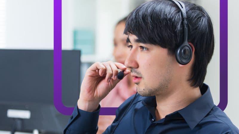 Female customer support employee with headphones.